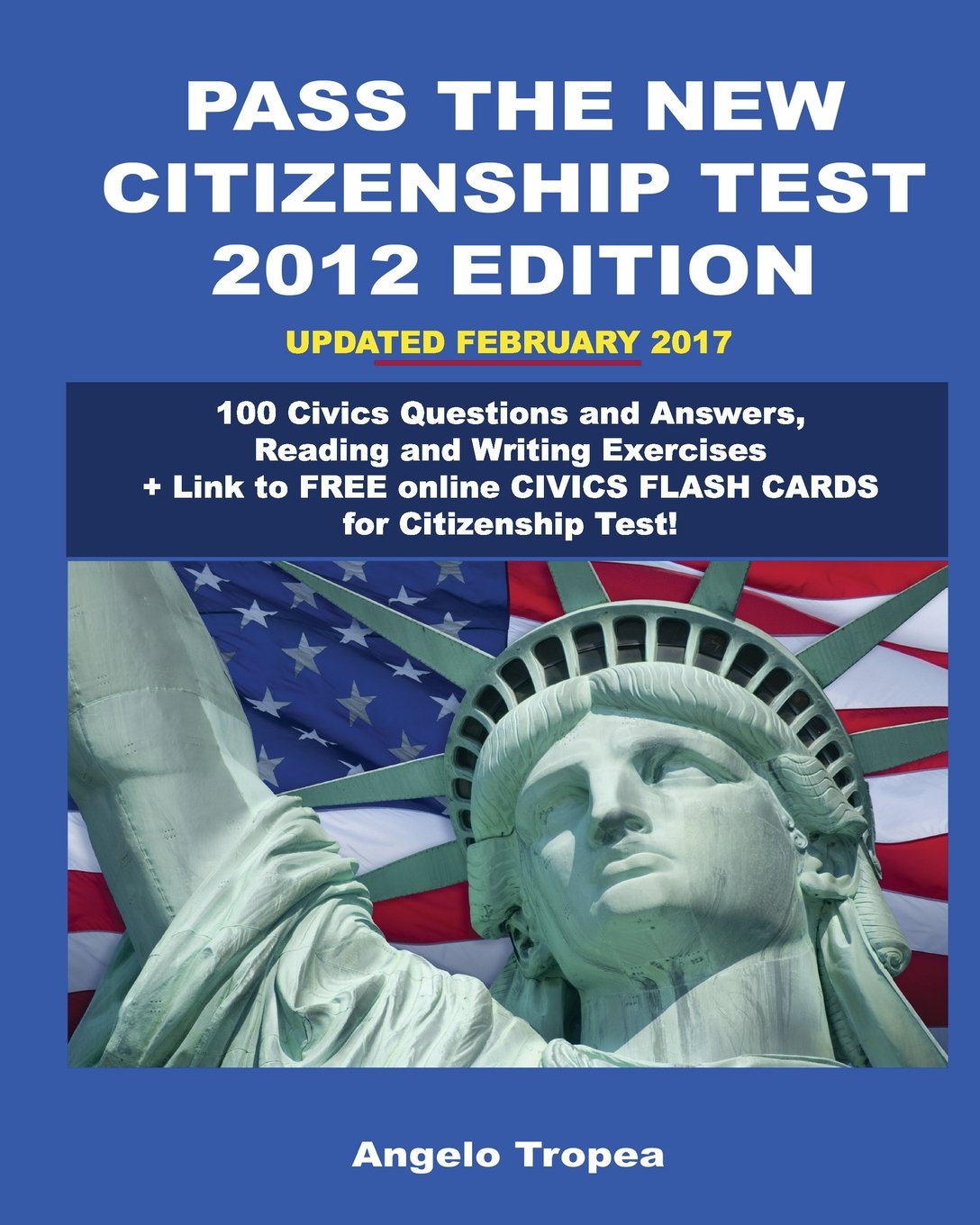 Updated January 2017! This edition of the popular book contains all the content of the original 240 page book and has been formatted to be clear and inexpensive. It provides a Quick and Easy way to prepare for the U.S. Citizenship test (100 Civics Questions and Answers - and the Reading and Writing sections). This book features the flash card' method of reviewing (Question on one page and the answer on the following page). This makes studying both easy and fun - and helps you prepare well for the citizenship test. The 100 civics questions are presented in 3 different ways: 1. Regular Question/Answer format: (each question followed directly with the answer). This format is helpful when you first start studying the questions and answers. It gives you a bird's eye view of the questions and answers. 2. Historical order (Logical Order): The same 100 answers are rearranged in a logical, historical order. This helps you to see the relationship among the questions and helps you to better remember the answers. 3. Flash card format: question on one page and the answer on the following page. This allows you to test your memory and makes memorizing the questions and answers both easy and fun. For those not completely fluent in the English language, the book provides exercises in both reading and writing and includes: 1. a complete list of the words you must know how to read 2. a complete list of the words you must know how to write 3. sentences reading and writing practice. This book also provides: 1. A list of helpful web addresses 2. A list of the 50 states and their capitals.